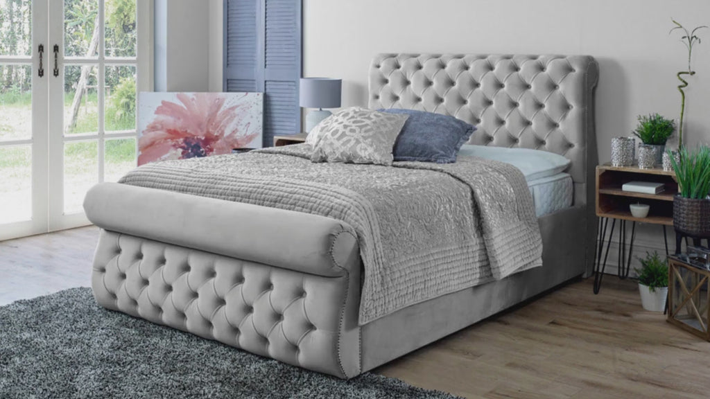 Our Stunning Alicante Ottoman Bed Frame Features A Deep Buttoned Headboard & Matching Footboard Available With Diamonte Buttons Or Matching Fabric Buttons This Timeless Design Will Ensure Y
