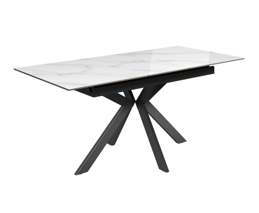 Aramis 130cm Ceramic Ext Dining Table - Glossy White, combines contemporary design with exceptional functionality. Available in matte grey ceramic, gloss white marble ceramic, and wood-look ceramic finishes, these tables suit a variety of modern interiors.