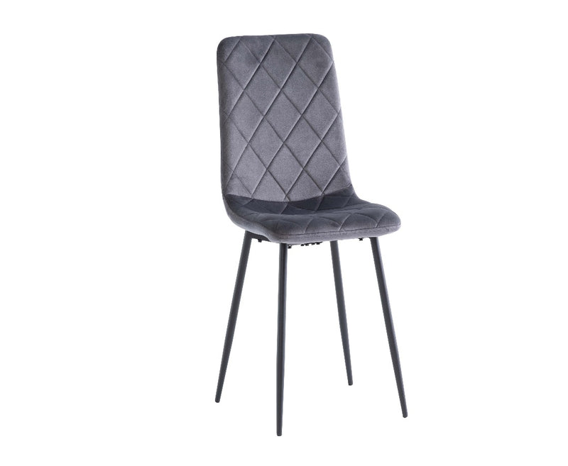 Bloom Velvet Dining Chair - Grey with Black Leg