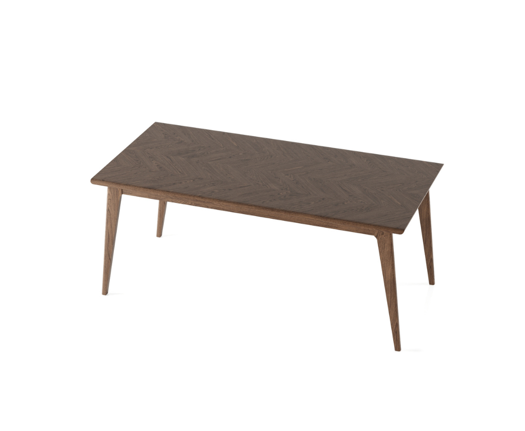 The Bronwyn 1.5 Extending Dining Table is a beautifully sleek design, deeply rooted in Scandinavian craftsmanship. With its tapered legs and bevelled-edge tabletop, it embodies effortless elegance while maintaining a minimalist aesthetic. The stunning French herringbone pattern on the tabletop adds a refined, artisanal touch, making it a true centrepiece for any dining space.