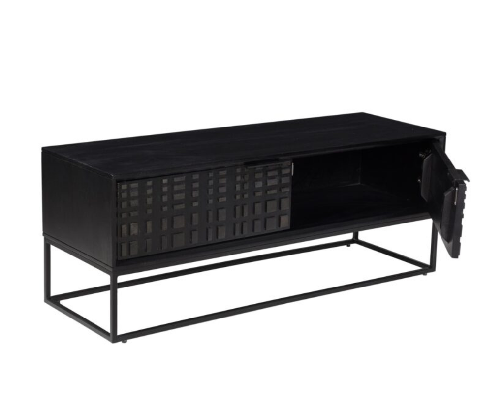 Fusion is our new exceptional range of occasional pieces. It brings together strong bold black powder coated metal framing and dramatic carved Mango wood with a linear design stained to a rich dark colour. This stunning collection will add interest and flair to any interior and that much desired conversation piece.