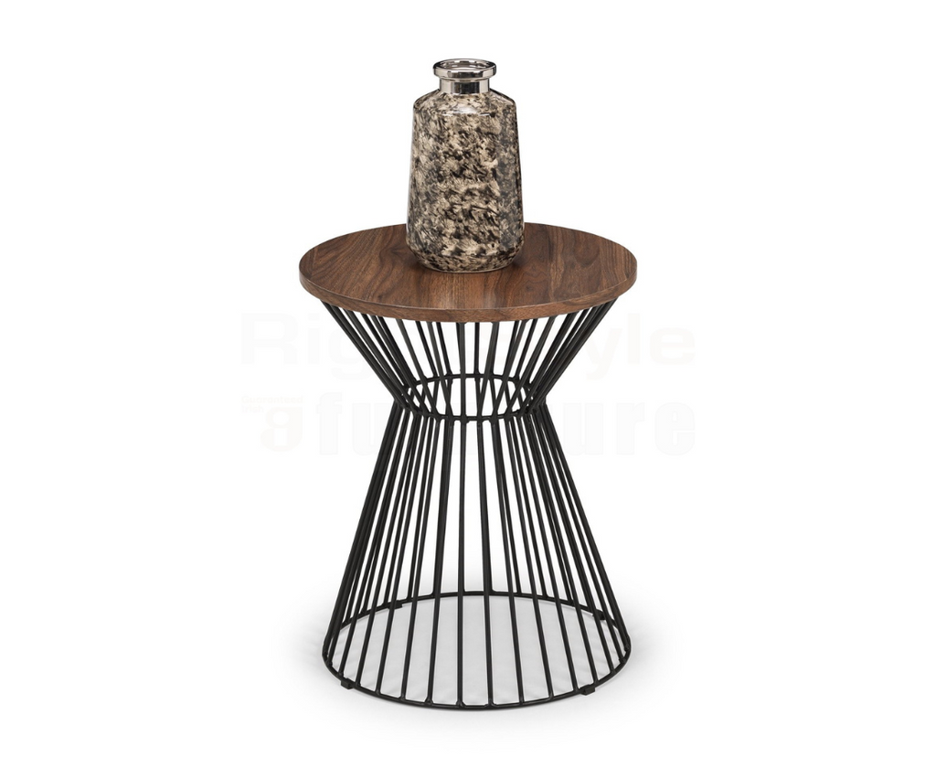 The Jessi Lamp Table Will Add A Contemporary Addition To Any Living Area. Featuring A Black Wire Frame With A Fixed Round Walnut Effect Top, This Lamp Table Creates A Striking Industrial Feel With A Classic Contrast.