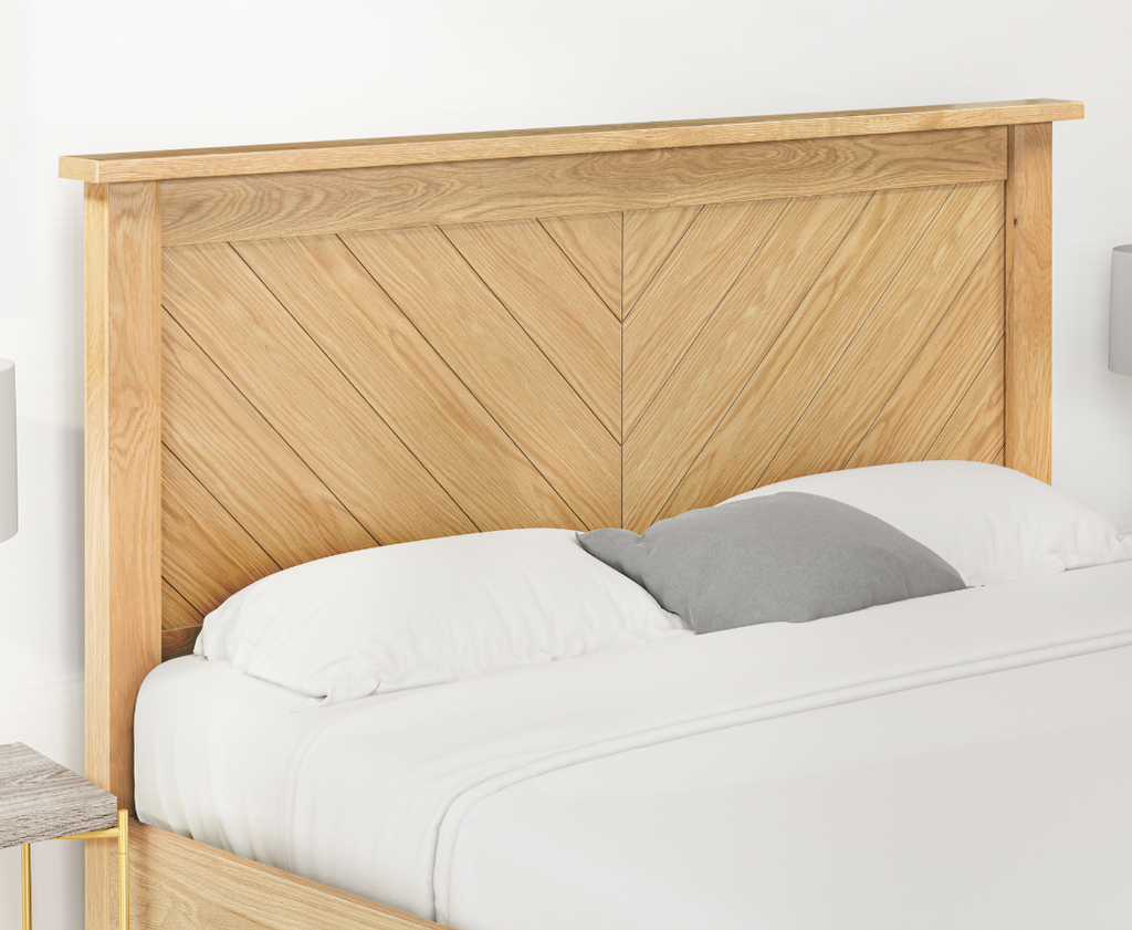 With its flowing chevron design this elegant bedframe is sourced using FSC certified American oak. Perfect in a traditional or more contemporary bedroom.