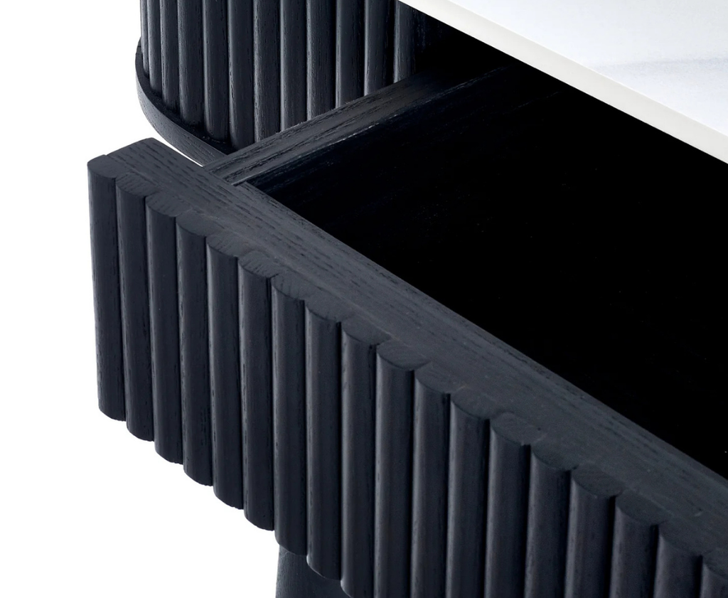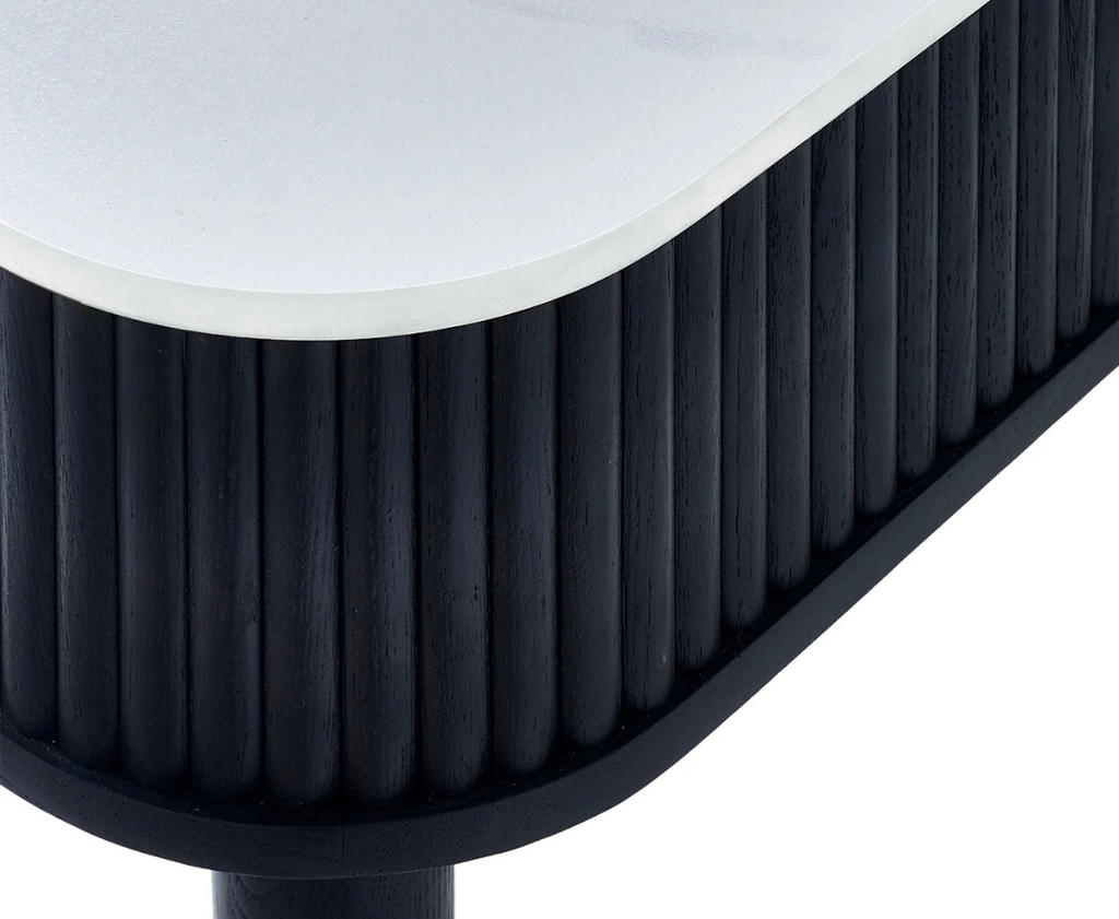 • Features a luxurious white stone marble effect top with elegant ribbed edges.