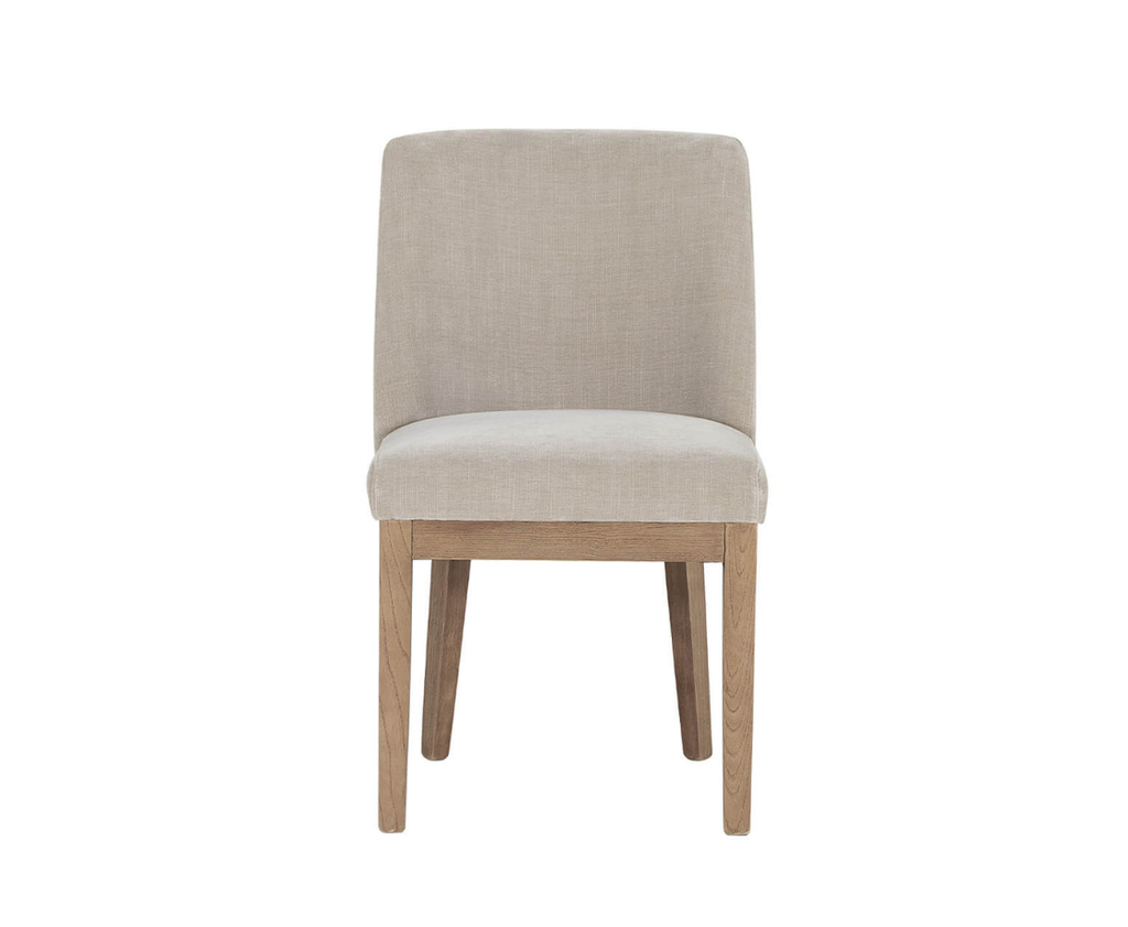 Massey Dining Chair in Beige combines comfort and elegance with a touch of modern rustic style. Featuring a plush fabric seat pad and backrest for added comfort, it's supported by sturdy solid wooden legs. The rich green upholstery adds a pop of colour, making it a standout addition to any dining space.