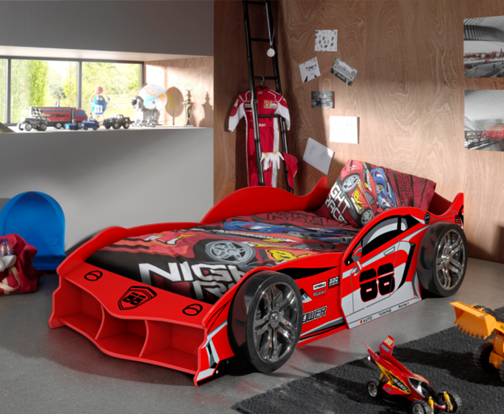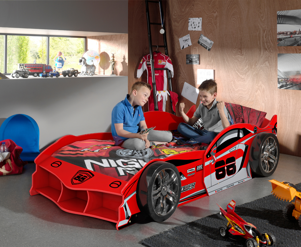 Bring the thrill of the racetrack to your child's room with this 90 x 200 cm bed from the CARBEDS collection. With its sporty red color, aerodynamic shape, and detailed design, every child will feel like a true champion. Crafted from lacquered MDF, this bed is durable and sturdy for ultimate sleeping comfort. Ideal for speed demons who want to transform their room into a real pit stop.