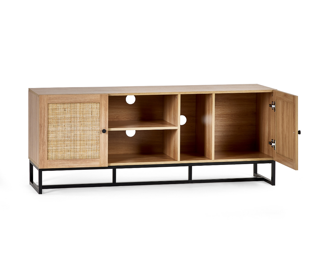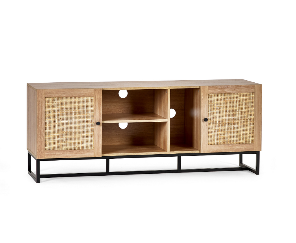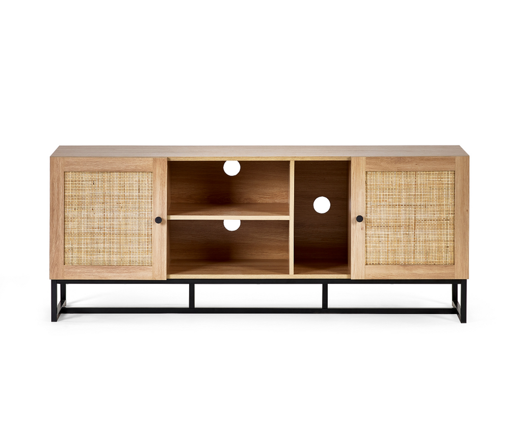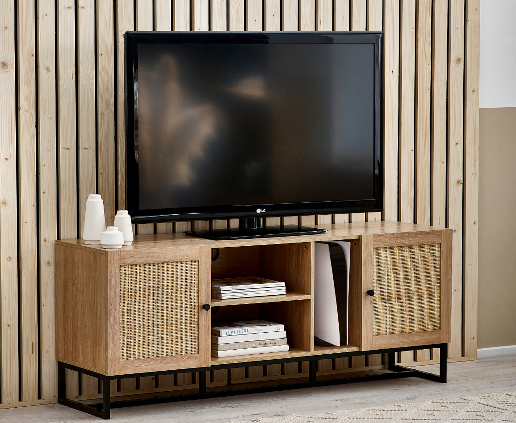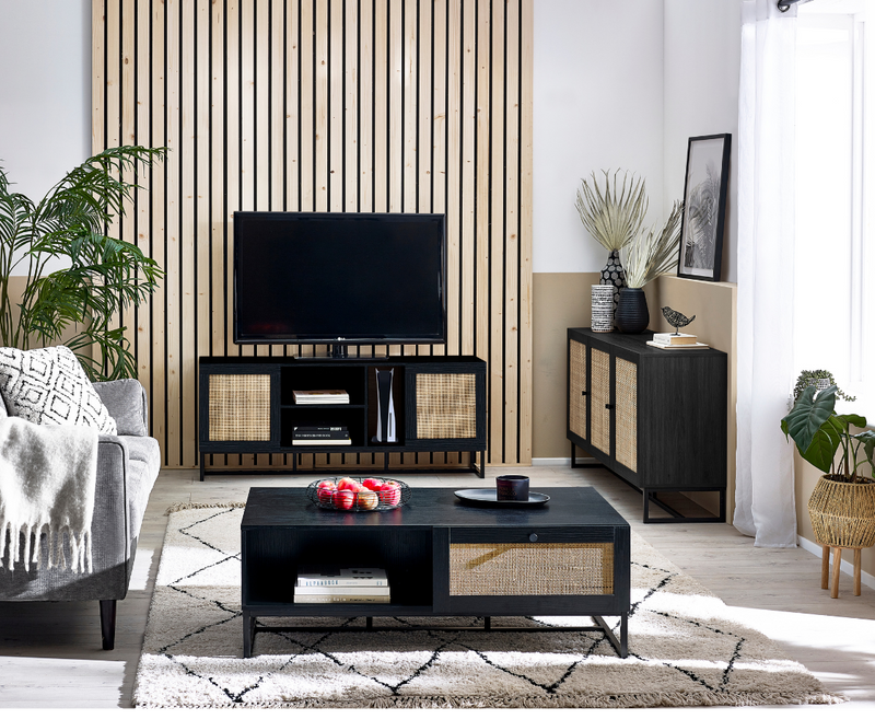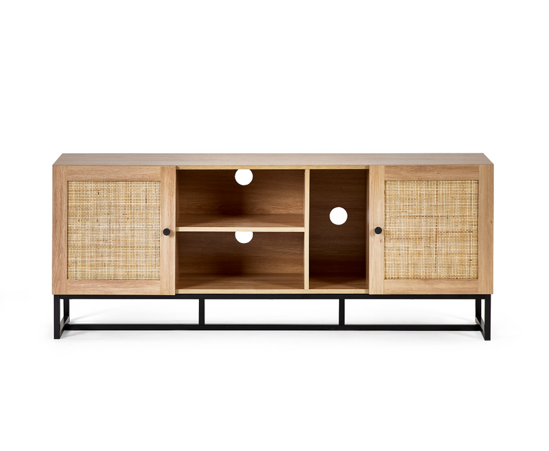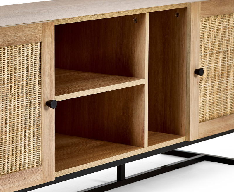 Fusing modern construction with retro design elements, the Pami collection will exquisitely complement any styled home. The natural rattan fronts and industrial-style base collaborate perfectly to leave a warm yet chic aesthetic in your home.