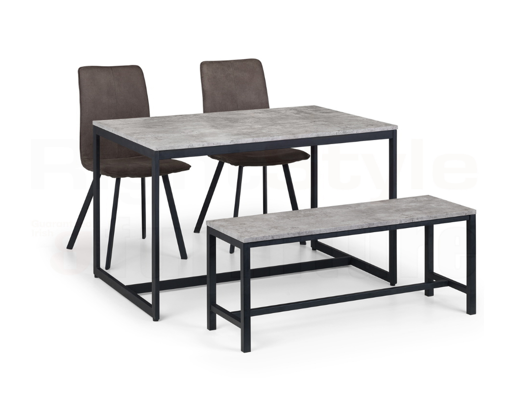 Simplistic In Design With A Contemporary Style, The Perth Dining Table Will Add A Stunning Industrial Look To Any Living And Dining Area. Constructed From A Black Coated Metal Frame, Complemented By A Striking Concrete Effect Tops, To Create A Very Stylish, Modern Product. Part Of The Rightstyle Furniture Perth Dining And Occasional Collection.