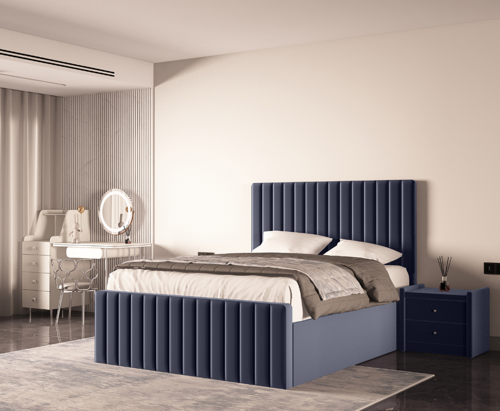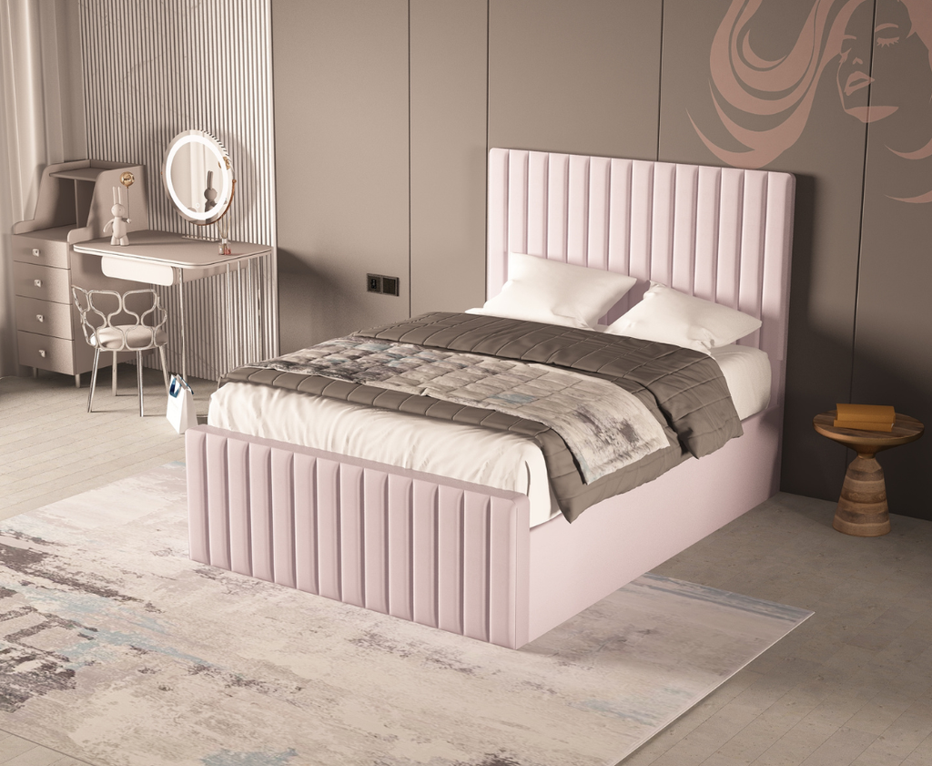 The Storie bed comes in a standard frame with slatted bade which provides high-quality finish from frame construction to upholstery. Storie is one of our best sellers. It features vertical panels in the headboard and high footboard. Minimalist design in beautiful upholstery. All our beds are structured in a solid framework that is made to last.