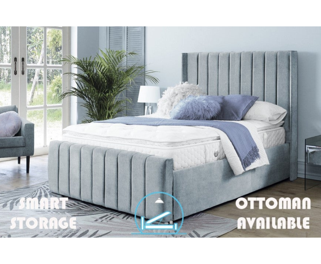 The Topaz Hand Made Bed Frame Is Another Exclusive Design Giving Your Room The Optical Illusion Of Height And Space Thanks To The Panelled Headboard And Footboard And The Proportioning Introduced By Our Designers Each Panel Is Individually Upholstered To Create This Eye Catching Desirable Look Available In A Huge Variety Of Colour & Fabrics Including Chenille And Velvet Options *Also Available With A Luxury Ottoman Option, See Our Ottoman Bed Section For More