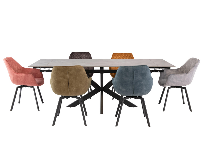 Vila Swivel Dining Chair - Dark Grey Velvet with Black Leg