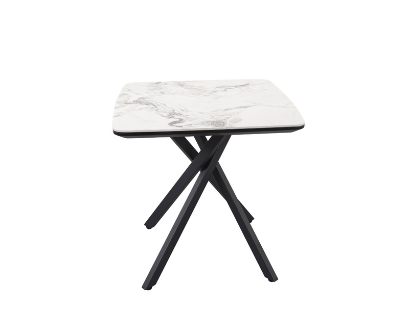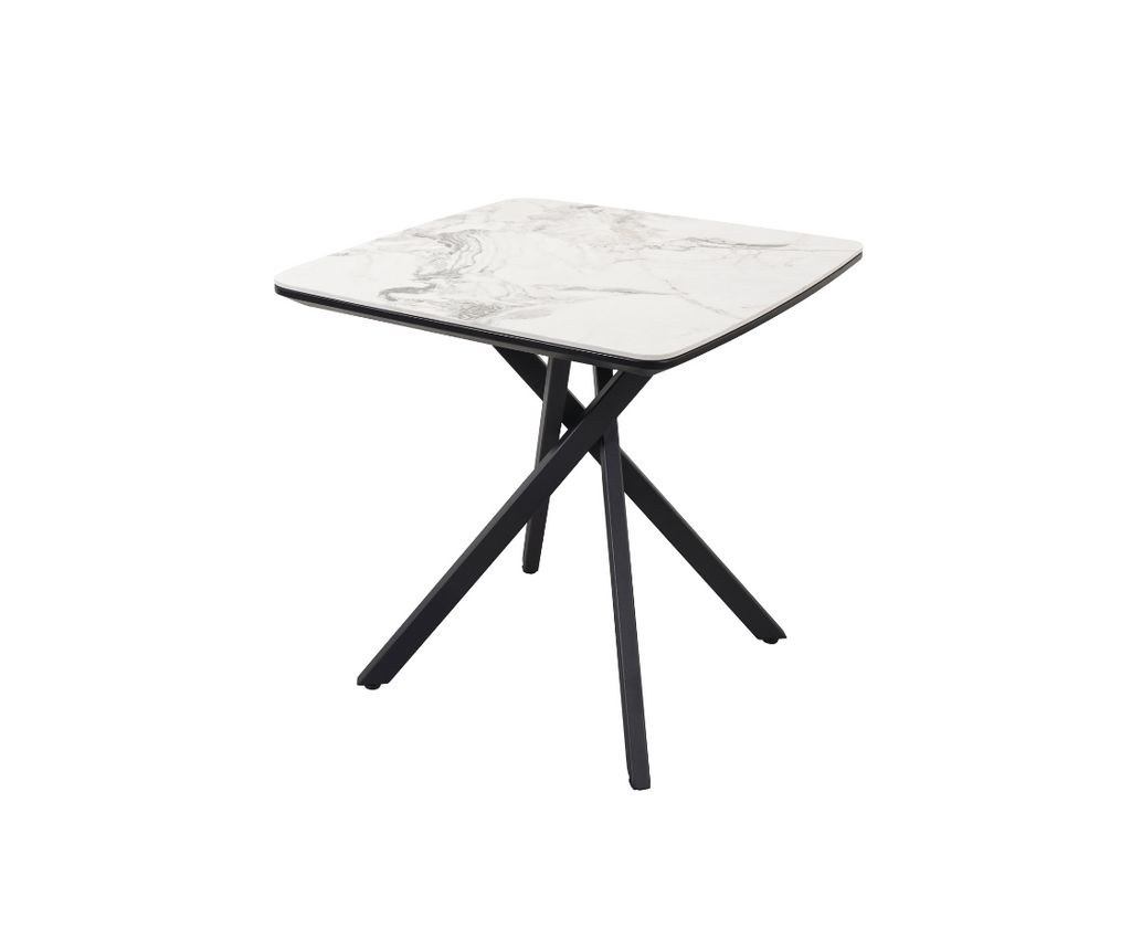 Alima End Table, The Alima range offers a sophisticated blend of comfort and style, featuring soft taupe fabric upholstery. Its sleek ceramic tables are supported by brushed black iron legs, creating a modern, minimalist aesthetic that seamlessly fits into contemporary spaces. This collection balances elegance with practicality, perfect for any modern interior.