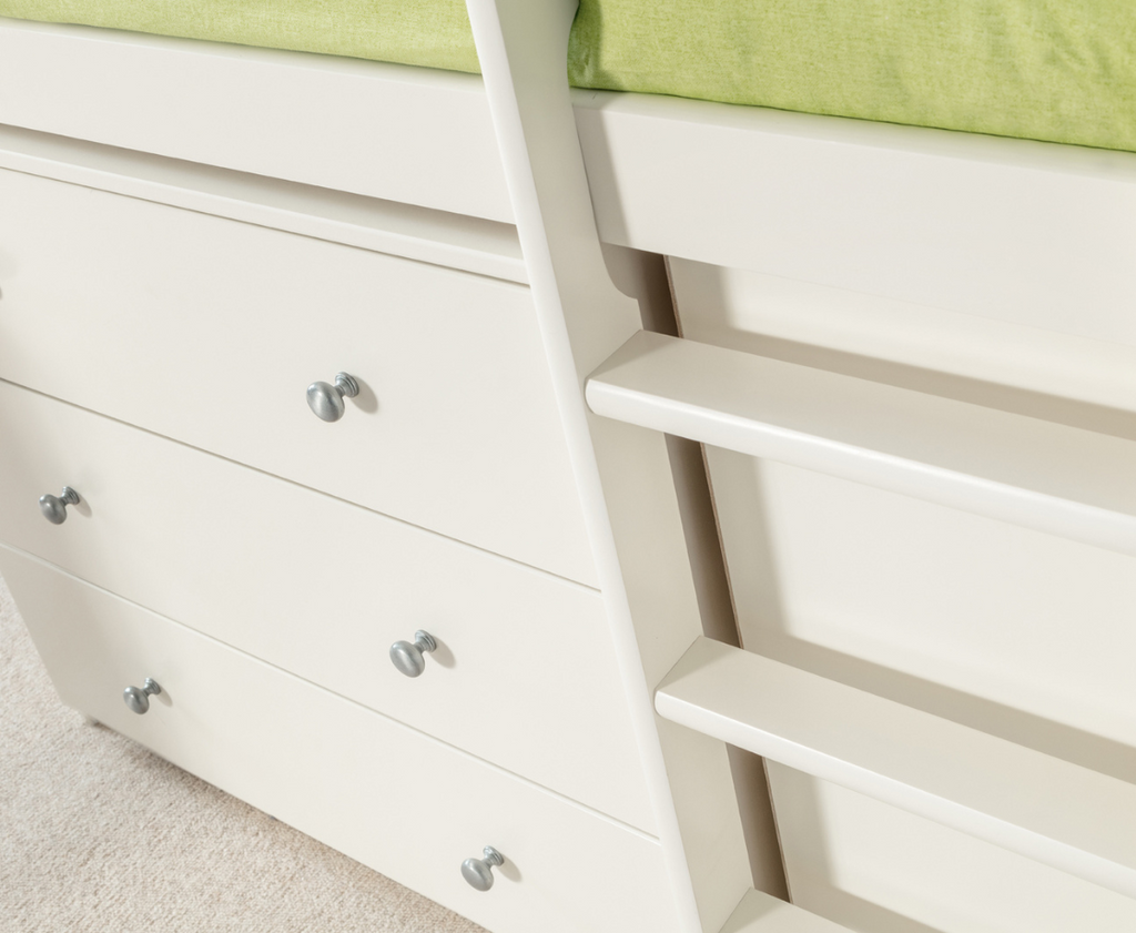 Auckland Is An Extremely Clever And Practical Piece Of Children's Furniture That Offers Incredible Functionality And Great Value For Money. Auckland's Compact Footprint Is Supported By A Robust, Solid Pine Framed Construction And Offers Numerous Useful Features From A Handy Pull-Out Desk To Ample Shelving And Cupboard Space. Immaculately Finished In A Smooth Stone White Lacquer, Auckland Comes With Two Choices Of Handle In Either Traditional Painted Wood, Or A Contemporary Brushed Steel Finish. Auckland Is The Perfect Accompaniment To Rightstyle Furniture's Cameo Range Of Bedroom Furniture In A Matching Stone White Finish.