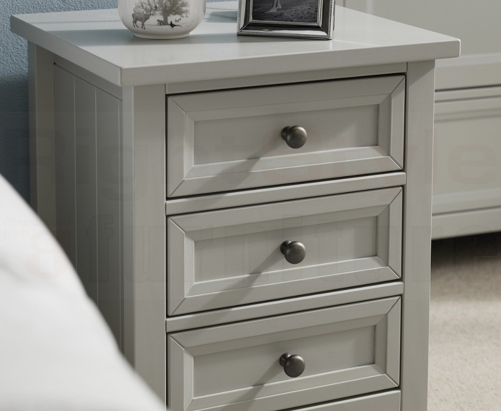 Maine Is An Elegant New England Style Range Of Bedroom Furniture. The Combination Of Exquisite Dove Grey Lacquered Finish With Characteristic Side Panelling And Detailed Chamfered Cabinetry Makes For A Soothing And Refined Aesthetic With Timeless Appeal, While Delicate Pewter Handles Add The Perfect Finishing Touch.