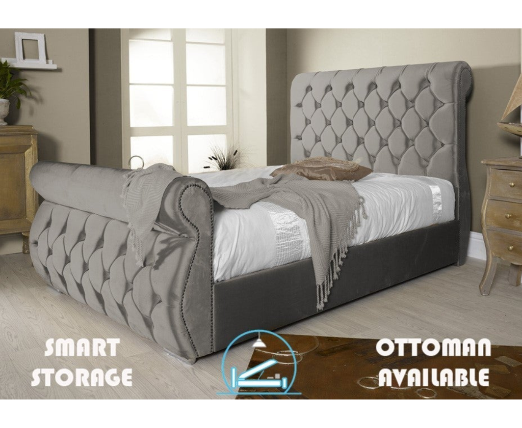 The chester Hand Made Bed Frame Is Another Exclusive Design Giving Your Room The Optical Illusion Of Height And Space Thanks To The Panelled Headboard And Footboard And The Proportioning Introduced By Our Designers Each Panel Is Individually Upholstered To Create This Eye Catching Desirable Look Available In A Huge Variety Of Colour & Fabrics Including Chenille And Velvet Options *Also Available With A Luxury Ottoman Option, See Our Ottoman Bed Section For More
