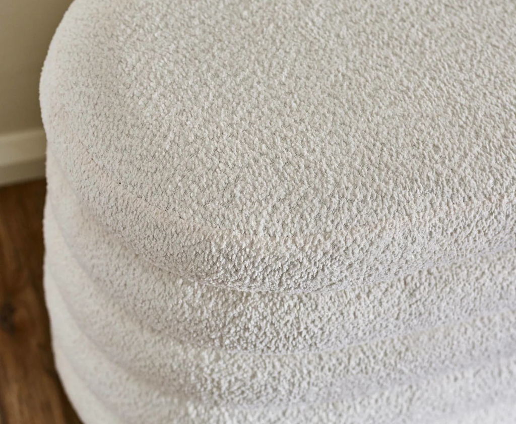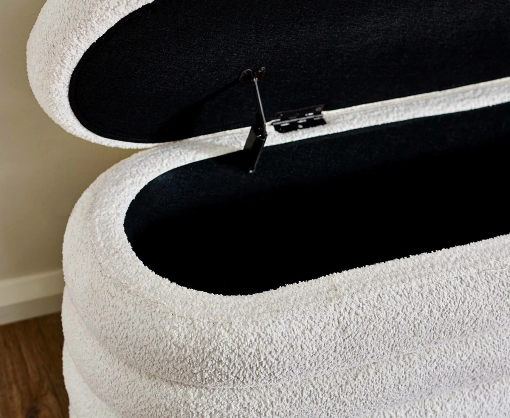 • TEXTURED BOUCLE FABRIC: Wrapped in soft Ivory bouclé, this storage ottoman offers a tactile finish that adds subtle texture and sophistication to your space.