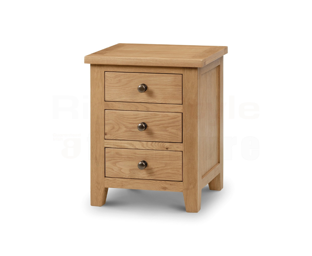 The Marin Oak 3 Drawer Bedside Has A 30Mm Chunky Top, Clean Lines And A Sumptuous Waxed Finish, It Is Crafted From Solid White Oak And Oak Veneers And Drawers Feature Dovetail Joints. Beautifully Constructed Using The Finest American White Oak And Oak Veneers, It Will Complement Both Traditional And Contemporary Décor.
