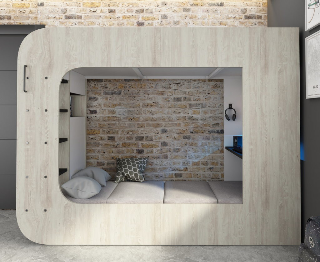 Step into the future with the unique Mspace Gaming Bed. This is the ultimate gaming bed for any young gaming enthusiast! This ergonomically designed high sleeper bed certainly has that all important WOW factor that will ensure your gamer is the coolest kid on the block!