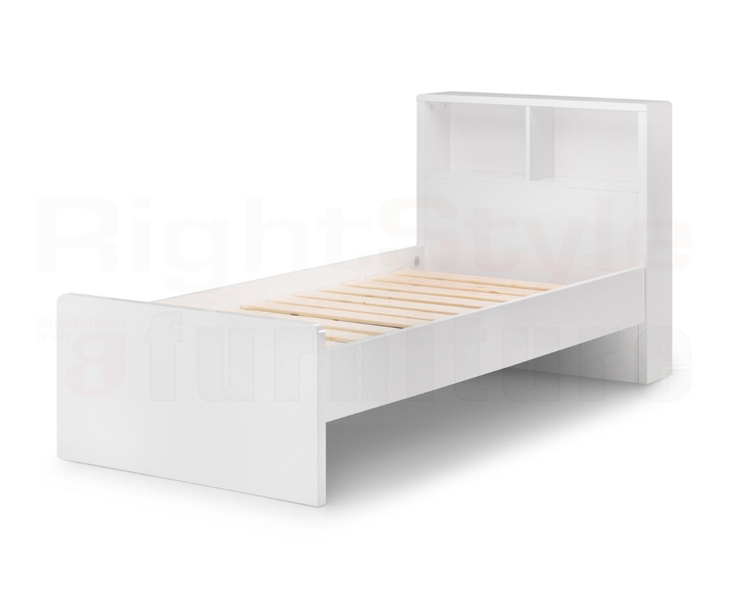 The New York Bookcase Bed Features Two Additional Shelves Within The High Headboard, Perfect For Storing Books And Toys. Finished In A Modern White High Gloss, This Bookcase Bed Offers A Clean, Crisp Finish, Enhancing The Sense Of Space Through Light Reflections. The Perfect Match For The New York Underbed Drawers, Creating A Space Saving Solution (Sold Separately). Part Of The Rightstyle Furniture New York Bedroom Collection.