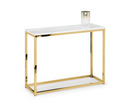 Olympia is a sleek console table with chic marble effect top on a well-crafted stainless steel frame. It has a timeless Italian design that fits well with a wide range of decorative styles.