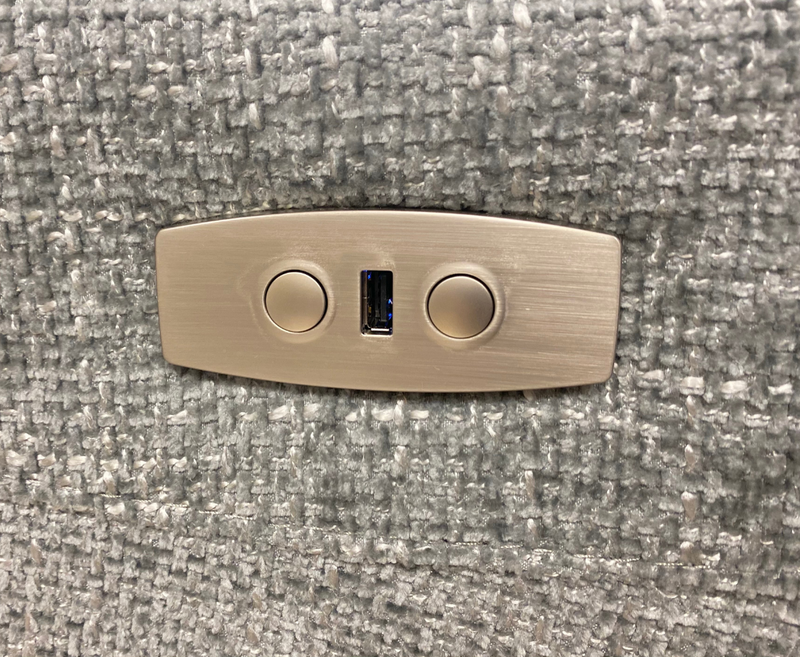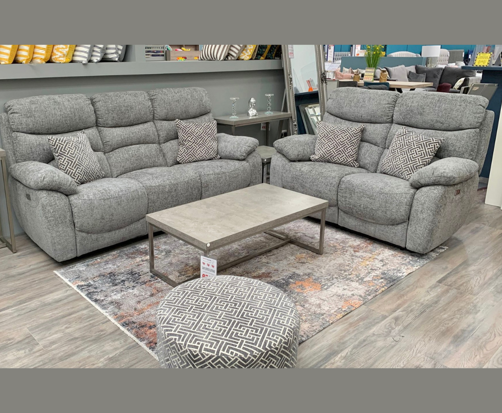 Traditional Style Full Electric Recliner With High Back Support. Finished In A Soft Nubuck Style Featured Fabric, Buttons Finished In  A Sleek Brushed Steel.