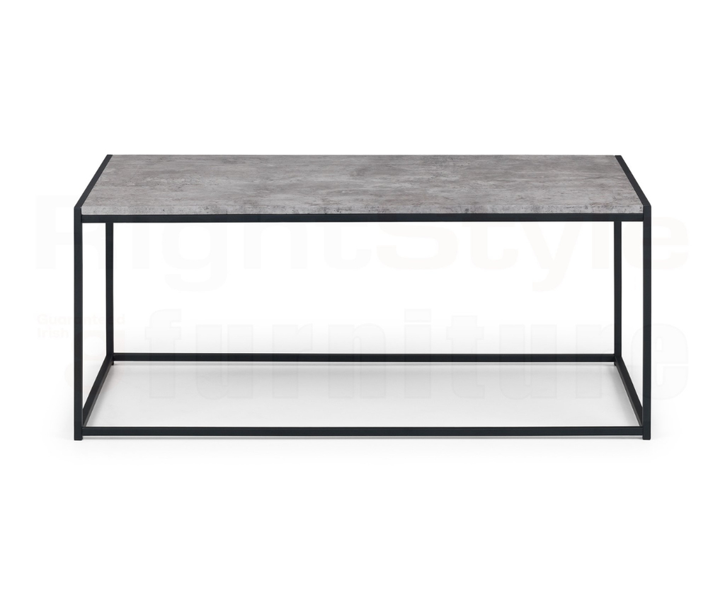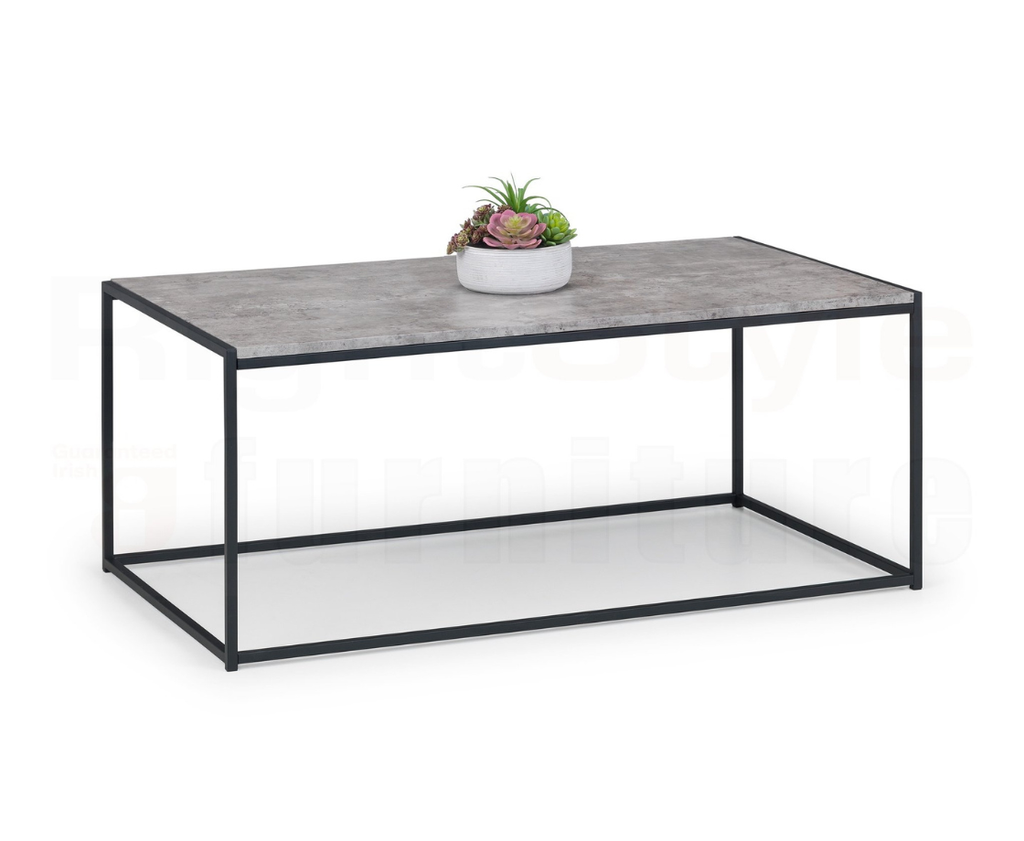 Simplistic In Design With A Contemporary Style, The Perth Coffee Table Will Add A Stunning Industrial Look To Any Living And Dining Area. Constructed From A Black Coated Metal Frame, Complemented By A Striking Concrete Effect Tops, To Create A Very Stylish, Modern Product. Part Of The Perth Dining And Occasional Collection.