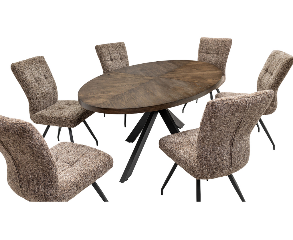 Samara 1.8m Oval Dining with 6 Arabella Chairs set - Dark Oak
