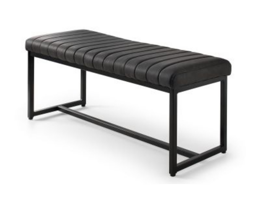 The Saoirse Bench adds an industrial, retro theme to any dining area. Finished in an antique black faux leather with a striking gunmetal frame, sure to compliment any contemporary décor.