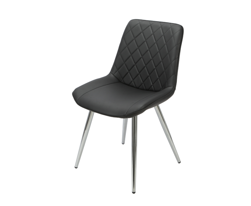 Silvia Dining Chairs, expertly upholstered in an eco leather with diamond back detail, strong chrome legs and base frame.